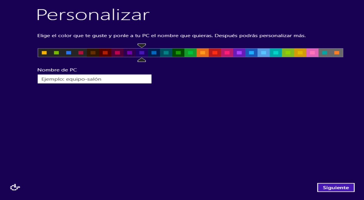10: Después, nos pedirá personalizar el color del fondo y el nombre del PC. Una vez hecho, pinchamos en siguiente.